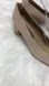These bone/tan heels have a vague sparkle/sheen to the fabric upper, a square block heel with a few spots noted in pics on the heel. They are a narrow width and otherwise in great condition. Fabric and leather upper with a leather sole