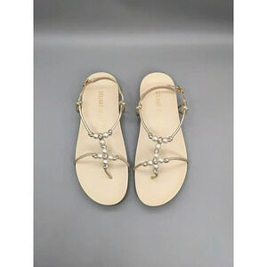 STUART WEITZMAN Women's Pearl Knot Metallic Leather Flat Sandals Size 7 B