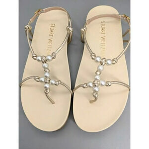 STUART WEITZMAN Women's Pearl Knot Metallic Leather Flat Sandals Size 7 B