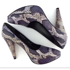 STUART WEITZMAN Purple Snake Platform Pumps 5.5