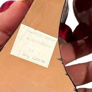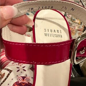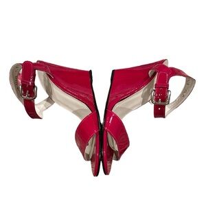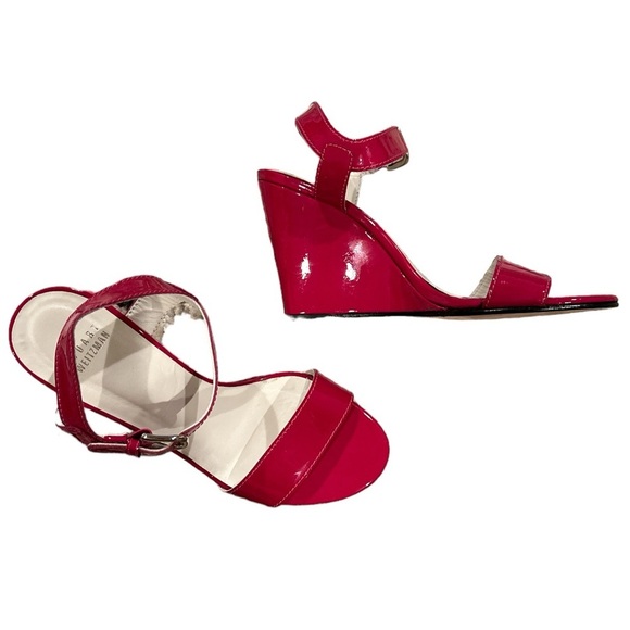 STUART WEITZMAN RED PATENT LEATHER WEDGE ANKLE STRAP SANDAL SHOES 7.5