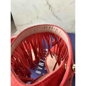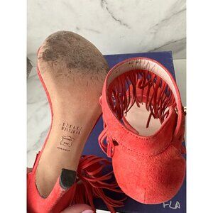 STUART WEITZMAN Red Suede Fringe Ankle Strap Heels Size 7.5