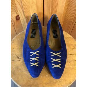 STUART WEITZMAN SUEDE PUMP ROYAL BLUE Size 8B gold lace detail on toes 1.25” heel
