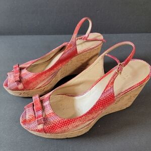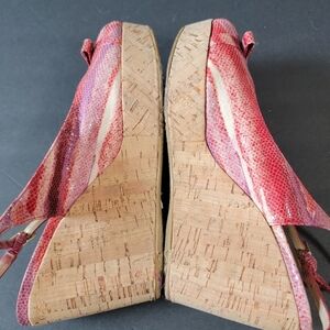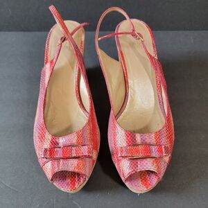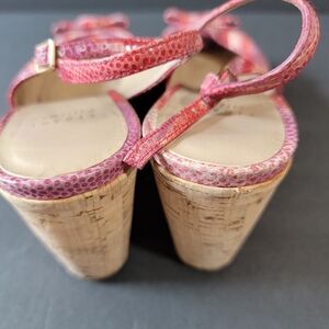 STUART WEITZMAN Snakeskin Pink Leather Slingback Platform Wedges Sz 7.5 Casual