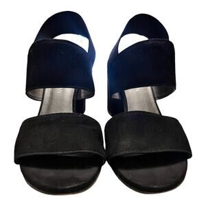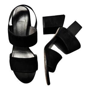 STUART WEITZMAN Suede Black Sandals Leather Block Heels Slingback Spain 8.5M EUC
