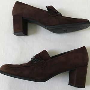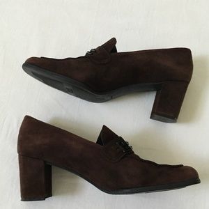 STUART WEITZMAN Suede Heeled Loafer Pumps Size 10 Brown