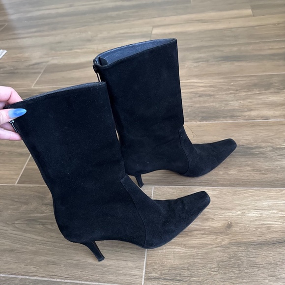 Stuart Weitzman black stiletto heel boots. Mid-calf length. Suede. Size 8. Good preloved condition.