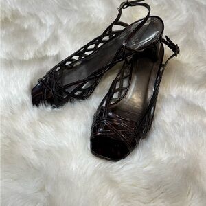 A blend of brown and black Strappy shoe. Perfect for the upcoming months. Size 8. These have been gently loved. Nice condition.