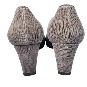 STUART WEITZMAN The Tube Textured Brown Napa Gold Buckle Square Toe Pumps Sz 7.5