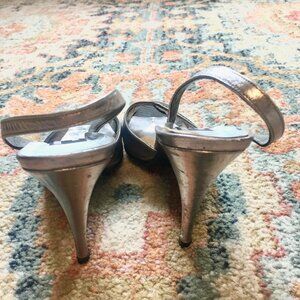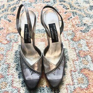STUART WEITZMAN Vintage Silver Leather Crystals Mesh Slingback Pumps Heels 7N