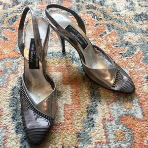 STUART WEITZMAN Vintage Silver Leather Crystals Mesh Slingback Pumps Heels 7N