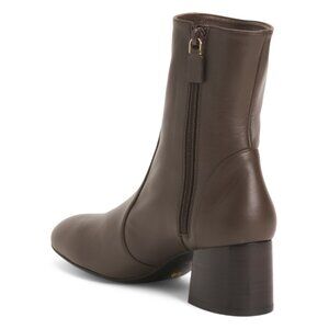 STUART WEITZMAN Walnut Brown Made In Spain Leather Flareblock 60 Zip Booties