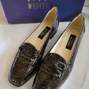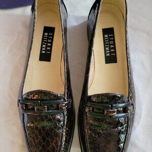 STUART WEITZMAN Women's Hornsby Size 8.5 M; Cola colored Snakeskin-look patent leather, made in Spain. In original box, these shoes show no signs of wear, the soles are perfect.