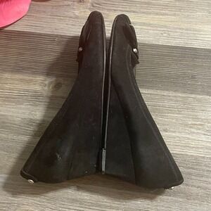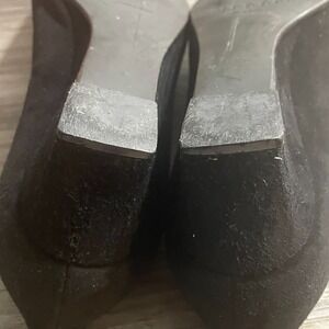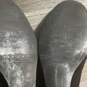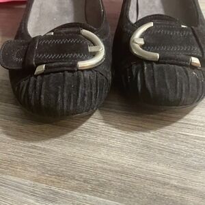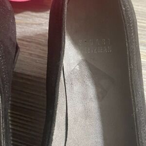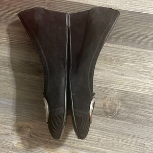 STUART WEITZMAN Womens Sz 7.5M Black Suede Wedge Heel Shoes Silver Buckle