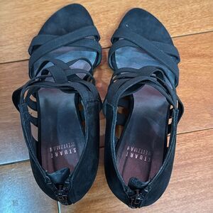STUART WEITZMAN Women's Black Suede Lasting Elastic Straps Sandal Size 7