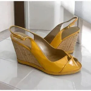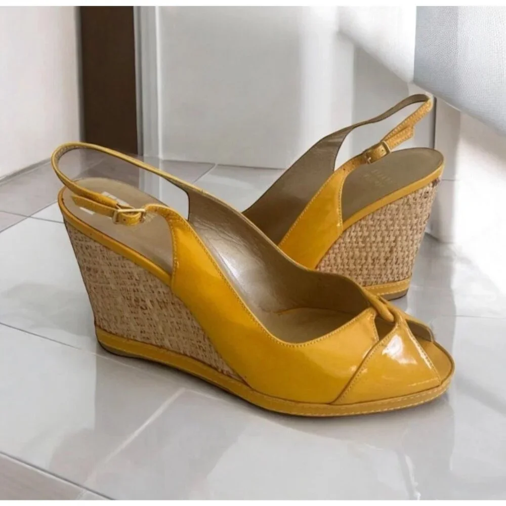 STUART WEITZMAN Yellow Patent Leather Wedges Size 9.5