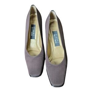 Elevate your shoe game with these stylish Stuart Weitzman pumps. Designed with a square toe and block heel, these brown shoes are perfect for any occasion, from partying to business meetings. The upper material is made of fabric, ensuring both comfort and style, suitable for all seasons - summer, fall, and spring. The vintage-inspired design is perfect for those who love elegant fashion. Add these Stuart Weitzman pumps to your shoe collection today!