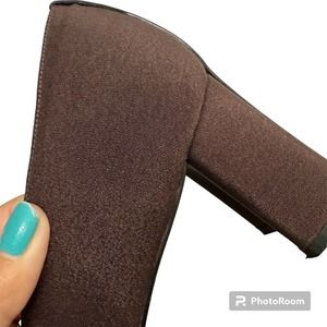 Very cute brown square toe block heel pump shoes. It’s great to wear as an office heels. The heels are great. There’s scratches at the back of the heel in one of the shoes but very unnoticeable when worn. This pair of shoes is in good pre-owned condition.