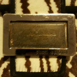 stuart weitzman real pony hair handbag. practicurly brand new. only problem plate with stuart weitzman name on front fell off. cant tell though something is missing. negotiable