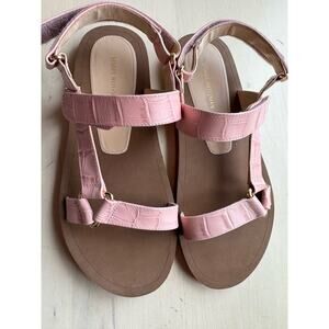 Stuart Weitzman Pink Croc-Embossed Vail Sport Sandals | Chunky Chic Summer Shoe size 8