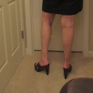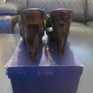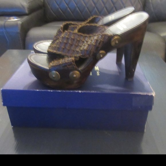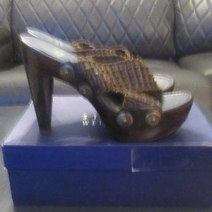 STUART WEITZMAN-Dark Brown Woven Heeled Slides ~ Size 9