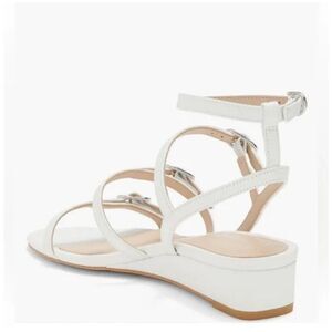 STUART WEITZMAN Grecian Buckle Wedge Sandal In White leather size 7.5 NWB