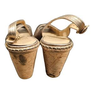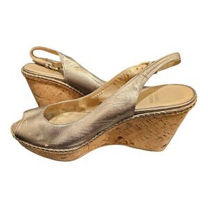 STUART WEITZMAN "Jean" Pewter Metallic Leather Wedge Sandal - Size 9