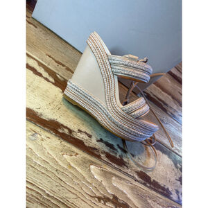 STUART WEITZMEN | NWOT Beige & Silver Espadrille Wedge Sandals Size 7