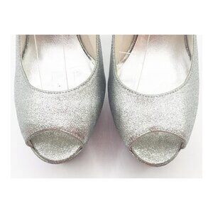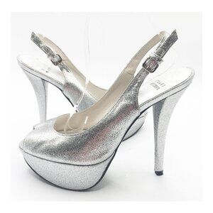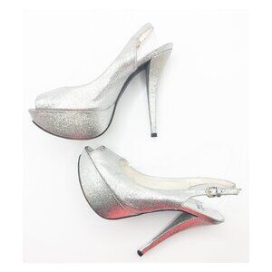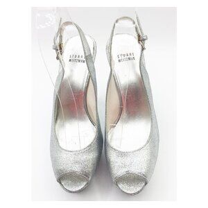 STUART WETZMAN Silver Glitter Open Toe Platform Slingback Pumps
