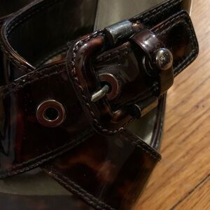 STUART Weitzman size 7.5 m tortoise patent leather wedge slip on shoes b…