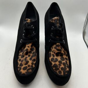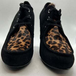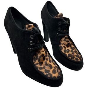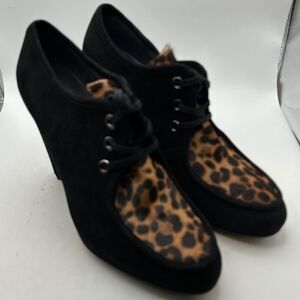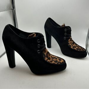 STUART WEITZMAN Womans Heels 6.5 Suede Lace Up Leopard Calf Hair On Hide Bootie