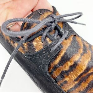STUART WEITZMAN Black Suede and Animal Print Calf-hair Lug Sole Tie Oxfords EUC