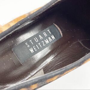 The funky style of these Stuart Weitzman oxfords really highlights the stunning craftsmanship of this brand. The body of the shoe is a fine black suede, with the vamp and collar highlighted with a tiger stripe print calf’s-hair. The suede is perforated at the edge between the suede and the calf’s-hair and it is all tied together by this year’s trendy lug sole. Stacked 1.5” chunky heel. Worn once. Sz 8. Please see photos for additional details.