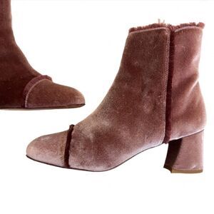 STUART WEITZMAN Pink On The Fringe Ankle Velvet Boots is gentle worn. Size: 8