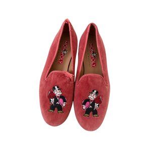 STUBBS & WOOTON Monopoly Collab Pink Valentine Velvet Smoking Loafers Flats Size