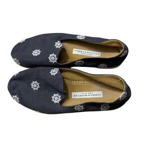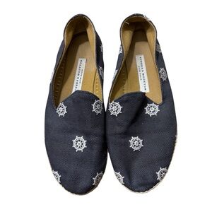 STUBBS & WOOTTON Nautical Espadrille Flats with Helm Design in Navy Blue Size 39