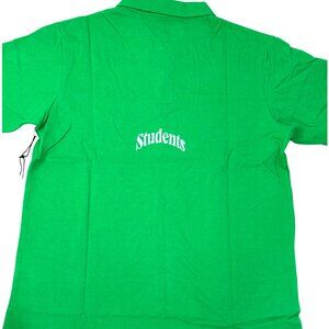 Add a pop of bold color to your wardrobe with this STUDENTS Golf brand green mesh polo shirt. Features a breathable mesh texture, classic polo collar, and bold Students text print on the front and back. Perfect for casual wear, streetwear styling, or layering.