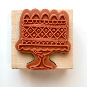 • 1 Square Wood Mounted Cake on Pedestal Cake Plate Rubber Stamp: 2” L x 2” W 1” D