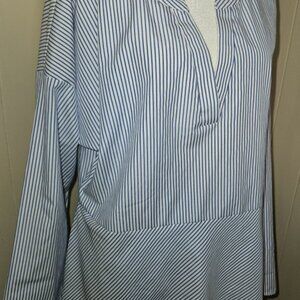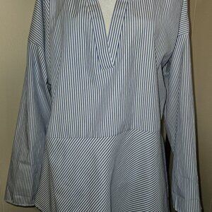 * STUDIO 1886 Blue White Pinstripe Long Sleeve Asymmetrical Hem Blouse Ladies L