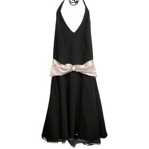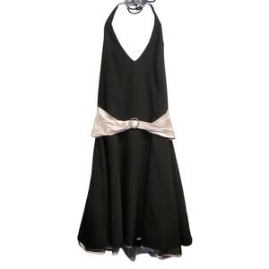 Black halter dress with cream silk built-in belt with rhinestones