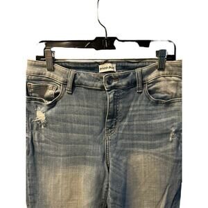 STUDIO BLUE Women's Mid Rise Raw Hem Distressed Crop Denim Jeans Size 31 Blue