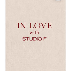 This is a new, long-sleeved gray dress from STUDIO F, size 8 (US). It features a mock neck with a visible silver-toned zipper closure at the back of the neck. The dress has a straight, fitted silhouette and appears to be made from a textured knit fabric. It comes with original tags attached, including a black hang tag and a smaller tag with the brand name "STUDIO F" in white lettering.