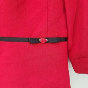 Add a pop of color to your professional wardrobe with this stunning STUDIO I red blazer! Featuring a beautiful rose accent, this petite jacket is perfect for adding a touch of elegance to your workwear or formal attire. In excellent condition and ready to wear.