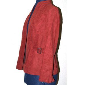 STUDIO I RED BURGUNDY SUEDE LIGHTWEIGHT OPEN JACKET BLAZER SZ 14W