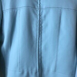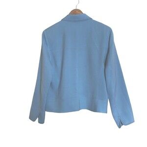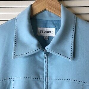 STUDIO I Womens Zip Up Suit Jacket Size 12 Blue Contrast Topstitching Lined