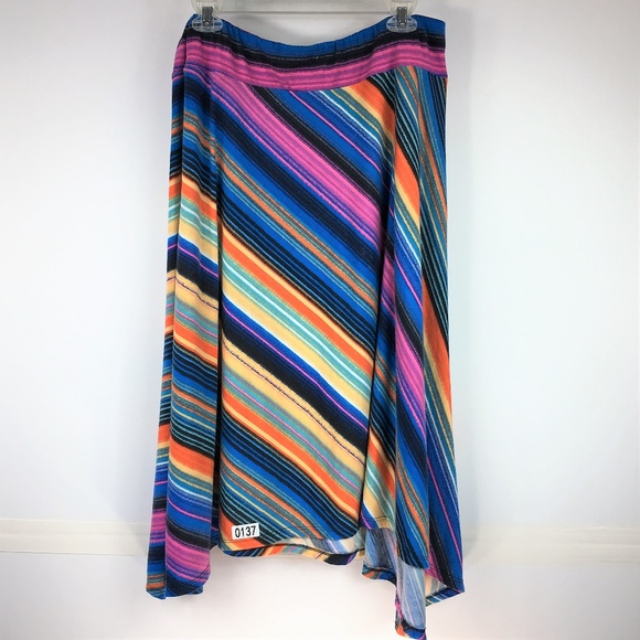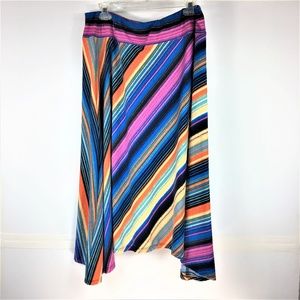 STUDIO PETITE JPR Multi-color Skirt High/Low Hem PL. Style: P65634825 96% Polyester 4% Spandex. Mfg: RN# 95619