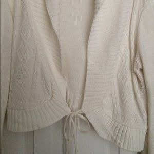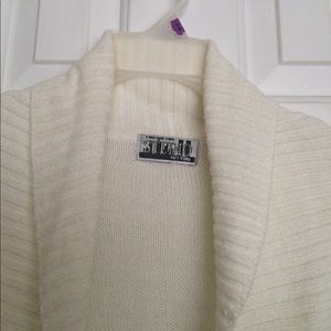 "STUDIO New York" Women Cream Color Cover Up/Shoulder Wrap. Has a string on bottom front hem. Has collar.