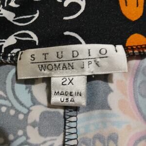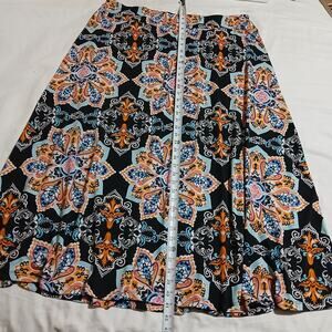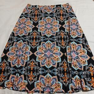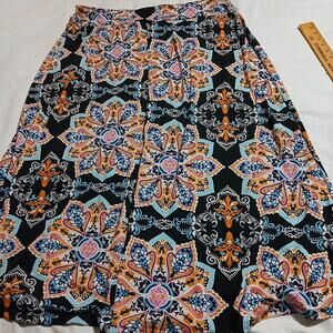 STUDIO Women's 2X Poly/Spandex Blend Mandala Print Black Skirt Easy Care