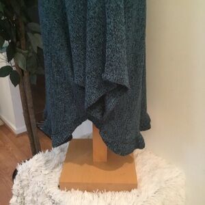 Studio Works size large short sleeve sweater ruffle hem turquoisish blue and black approximate pit to pit 21 shoulder to hem shortest 19 longest 24