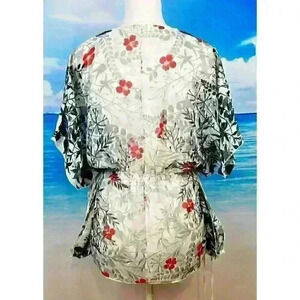 STUDIO Y Womans Sheer Shirt Lightweight Butterfly top Gathered Tie Waist size Sm
